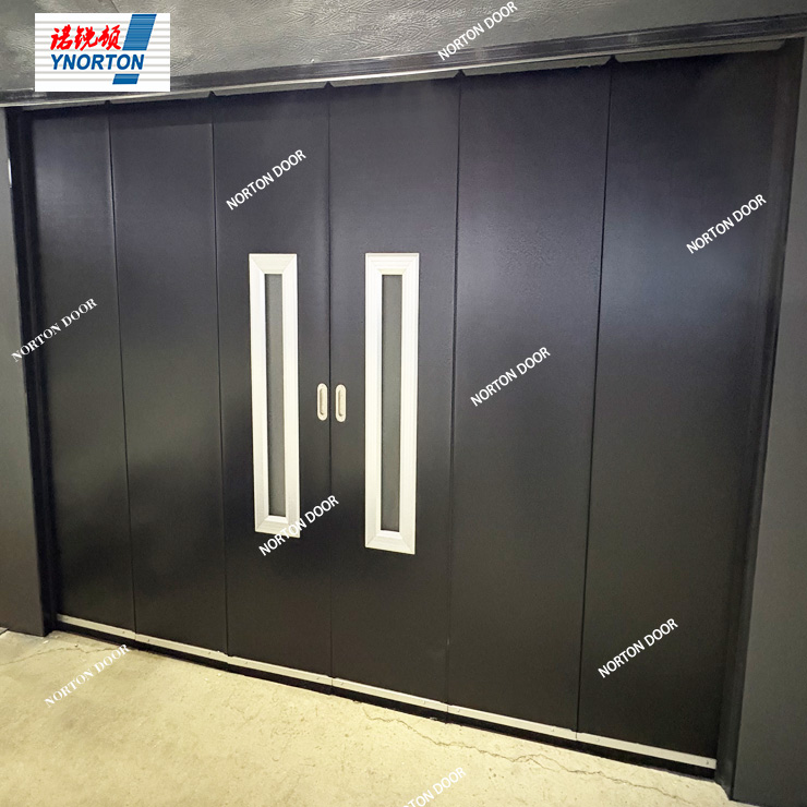 नॉर्टनने विकसित केलेला साइड-स्लाइडिंग गॅरेज दरवाजा पार्श्व स्लाइडिंग ओपनिंग आणि क्लोजिंग यंत्रणा स्वीकारतो. त्याचे सर्वात उल्लेखनीय वैशिष्ट्य म्हणजे अंतराळ कार्यक्षमता, हे मर्यादित कमाल मर्यादा उंची किंवा अतिरिक्त-विस्तृत परिमाण असलेल्या गॅरेजसाठी योग्य आहे. ओव्हरहेड क्लीयरन्सची आवश्यकता दूर करून ट्रॅक बाजूच्या भिंतींच्या विरूद्ध फ्लश स्थापित केले आहेत. एकच दरवाजा जास्तीत जास्त 6 मीटर रुंदी साध्य करू शकतो, तर डबल-डोर, द्वि-भाग घेणारी कॉन्फिगरेशन 12 मीटर पर्यंत वाढवू शकते, ज्यामध्ये बहु-वाहन पार्किंगची आवश्यकता आहे.